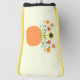 This awesome golf putter cover features a digital art image of a floral arrangement of pretty flowers inside an orange coloured pumpkin vase. The centrepiece of the bouquet is a beautiful big yellow sunflower with large pale green leaves. Either side of the sunflower are a selection of other blooms including red rudbeckia, pale peach coloured Zinnias and pretty orange and yellow bicoloured Gaillardia. All flowers are supported by their green stems and leaves. The petal colours are designed to match the colours of fall.