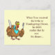 Definitely met my expectations. Had been looking for a unique Thanksgiving postcard. Heavyweight durable enough for international mailing. Design wonderful - brought back childhood memories. Printing as wanted. International penpals loved this Thanksgiving tradition.
