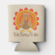 Keep your cans cool this Thanksgiving in this festive holiday can cooler with turkey and text "Talk Turkey to Me". Look for matching items in our store.