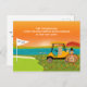 This festive moving announcement showcases a Thanksgiving golf cart on a golf course, loaded with moving boxes, with a Thanksgiving Turkey carrying one of the boxes, the most important one- the kitchen box! It's a unique and humourous design that's sure to bring a smile to your fellow golfers and friends when they get this new address change.