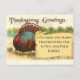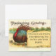 Vintage picture of a turkey with a sign, is featured on this Thanksgiving Day postcard. Front of the postcard reads, "Thanksgiving Greetings" and "A Blessed And Happy Thanksgiving Day To You And Your Family". A sweet postcard to send to family and friends for the Thanksgiving Holiday!