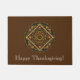 This elegant mandala features layers of circles and squares with Native American inspired patterns and more modern Thanksgiving icons, like turkeys, cornucopias, and leaves, decorating the layers, with plenty of reds, browns, yellows, and oranges for a pleasant autumn feel. Customise the text on this doormat with your own preferred greeting or remove it entirely to make a unique decoration for your entryway.