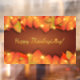 Pretty picture of Fall leaves with Happy Thanksgiving message, is featured on this window cling for Thanksgiving. This will enhance your windows for the Thanksgiving holiday! Sticks to glass surfaces electro-statically so it can be removed and used over again. A great and easy way to decorate your home for Thanksgiving!