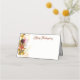 This folded name place card is shown in basic white with a Thanksgiving autumn fall leaves graphic print.
