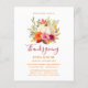 Thanksgiving dinner open-house invitation on budget paper. Cheerful fall flowers and white pumpkin in watercolor boho motif with autumn leaves and script text in festive colours. Click Customise to change the text or background colour.