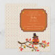Celebrate your child's November/Holiday birthday with this adorable, festive invitation. It features a tiny dot background with an owl sitting on a fall tree branch wearing a pilgrim hat. Your message has a decorative double frame.