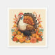 Party paper napkin is shown in the white cocktail size with a Thanksgiving turkey print.
