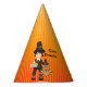 Thanksgiving Party Hat/Pilgrim with turkey and pumpkin pie on orange stripes