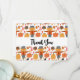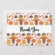 Flat thank You card with a seasonal fall pattern, Corn, mushrooms and flora. Along with turkeys and scarecrows to honour the Thanksgiving tradition.