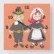 Thanksgiving Pilgrim Boy And Girl Square Wall Clock