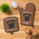 Thanksgiving Pilgrim Hat on Tan and Brown Plaid Oven Mitt & Pot Holder Set