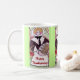 A cute Thanksgiving lady pilgrim smiles on this adorable holiday cup.