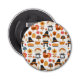 Bottle opener with a seasonal Thanksgiving pattern. Featuring whimsical pilgrims, turkeys, pumpkin pie and other various autumn themed elements.
