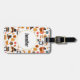 A luggage tag with a seasonal Thanksgiving pattern. Featuring whimsical pilgrims, turkeys, pumpkin pie and other various autumn themed elements.