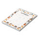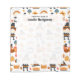 A notepad with a seasonal Thanksgiving pattern. Featuring whimsical pilgrims, turkeys, pumpkin pie and other various autumn themed elements.
