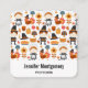 Business cards with a seasonal Thanksgiving pattern. Featuring whimsical pilgrims, turkeys, pumpkin pie and other various autumn themed elements.
