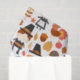 Tissue paper with a seasonal Thanksgiving pattern. Featuring whimsical pilgrims, turkeys, pumpkin pie and other various autumn themed elements.