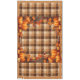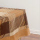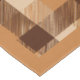 This Thanksgiving table cloth has brown and burnt orange plaid with autumn leaves and pumpkins and a border matching the plaid.