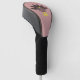 This awesome golf driver cover features a cartoon of a turkey with big black eyes, a small yellow beak and tail feathers sticking up. The feet are facing in opposite directions making the turkey look goofy. The turkey has pink text on its’ belly that says “Happy Thanksgiving” and it looks like the feathers have been plucked out to reveal the message.