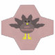 This awesome soccer ball features a cartoon of a turkey with big black eyes, a small yellow beak and tail feathers sticking up. The feet are facing in opposite directions making the turkey look goofy. The turkey has pink text on its’ belly that says “Happy Thanksgiving” and it looks like the feathers have been plucked out to reveal the message.