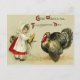 This adorable vintage Thanksgiving postcard, by Ellen Clapsaddle, features a young girl offering a cob of corn to a large turkey. The message on the card is: Good Wishes for Thanksgiving Day.