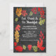 Thanksgiving Day potluck dinner invitation for family and friends. Dark grey wood background. Personalise this template with your information. Customise it further to make more changes.