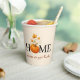 Add a festive touch to your holiday beverages with this Thanksgiving paper cup design. Featuring the word HOME with a watercolor pumpkin as the “O” and the heartfelt phrase is where we give thanks, this cup is perfect for Thanksgiving dinners, autumn parties, or cosy family gatherings. A practical yet decorative way to serve drinks while celebrating gratitude and the warmth of the season.