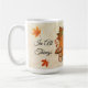 Personalise this Unique "One of a Kind" Thanksgiving Pumpkin Mug! It Features a Beautiful Orange Pumpkin Surrounded by Fall Leaves in Shades of Orange and Green with Orange Berries and Brown Mushrooms and the Christian Quote..."In All Things Give Thanks"!