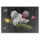 A fun and sweet Thanksgiving Cutting Board where the Turkey has escaped from Thanksgiving and is travelling through the universe with the help of his rocket.