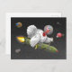 A fun and sweet Thanksgiving Holiday Postcard where the Turkey has escaped from Thanksgiving and is travelling through the universe with the help of his rocket.