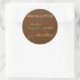Round sticker is shown with a brown background and a Thanksgiving words print.