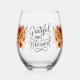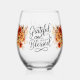 Thanksgiving Thankful Blessed fall florals Stemless Wine Glass