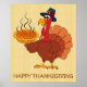 Thanksgiving turkey holding a pie wearing a Pilgrim hat with text...Happy Thanksgiving poster
