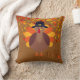 This throw pillow is shown with a autumn fall leaves and a Thanksgiving turkey print on a light brown colour background.