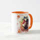 Thanksgiving coffee or tea mug with a Turkey, wishbone, and autumn leaves border.