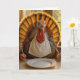A Thanksgiving turkey, perched proudly at the dinner table, poised with a fork and knife in hand, eagerly awaiting the feast ahead, all bathed in the warm glow of sunlight streaming through the window.