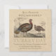 Invite your Thanksgiving Day guests in style with the vintage themed invitation flat card. This design features wild turkeys on the front accented by script overlay on a tan background and has all your celebration details for you to personalise. Designed by world renowned artist ©Tim Coffey.