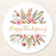 Thanksgiving Dinner Paper Coasters. Festive fall foliage in boho motif with watercolor leaves and bright flowers. Click Customise to change the text or background colour.