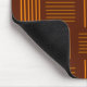 This mouse pad has a mid-century modern design that looks like a weave with orange and brown lines on a field of darker brown.