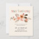 Modern and fun watercolor flowers feature on this Happy Thanksgiving wedding invitation. Dusty blue and orange fall autumn shades.