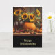 Thanksgiving with Wine Sunflowers Pumpkins Card