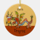 A whimsical cartoon dragon illustration on this ornament is in browns, golds, orange, with a pale blue underside. On the back is a purple green dragon. You can edit text to create your own personalised gift. Need help, email lilly@lillyarts.com