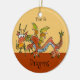 A whimsical cartoon dragon illustration on an ornament is in purple,pink, maroon, with a green striped underside. You can edit text to create your own personalised gift. Need help, email lilly@lillyarts.com