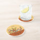 A whimsical cartoon dragon illustration on this coaster is in browns, golds, orange, with a pale blue underside. You can edit text to create your own personalised gift. Need help, email lilly@lillyarts.com