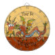 A whimsical cartoon dragon illustration on a dart board is in browns, golds, orange, with a pale blue underside. You can edit text to create your own personalised gift. Need help, email lilly@lillyarts.com
