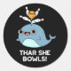 Thar She Bowls Funny Whale Bowling Pun Dark BG Classic Round Sticker