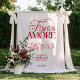 Absolutely in love!!!!! I designed it based in having on a wedding arbour but the moment it arrived I decided would be much better for a back drop for photos due to weather. I could not be more happier. Looks absolutely beautiful. Love that you can personlise however you wish. Printing was amazing, when designing a prompt had come up to say some areas may be blurry but it is not. It looks exactly the way it is shown on screen for design. Just perfect