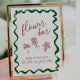 "Flower Bar - make a bouquet to take on your way" sign with Italian color scheme for a Bridal Shower with a "That's Amore" theme.
