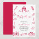 The “That’s Amore” Hand Drawn Quirky Retro Bridal Shower Invitation features a playful Italian-inspired design with a modern minimalist layout. The card displays charming red line art illustrations arranged around the border. These include clinking wine glasses, a wine bottle, pizza, bread, cheese, citrus slices, olives, a candle, and a coffee cup. The hand-drawn style adds a warm and artistic touch that feels relaxed and inviting.