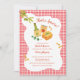 This cute and trendy invitation is perfect for a Bridal Shower with the "That's Amore" theme or an Italian theme. The design features an illustration of typical Italian food such as tomatoes, olive oil, lasagne and pasta. A red plaid texture background and an olive branch on the corner complete this adorable card.